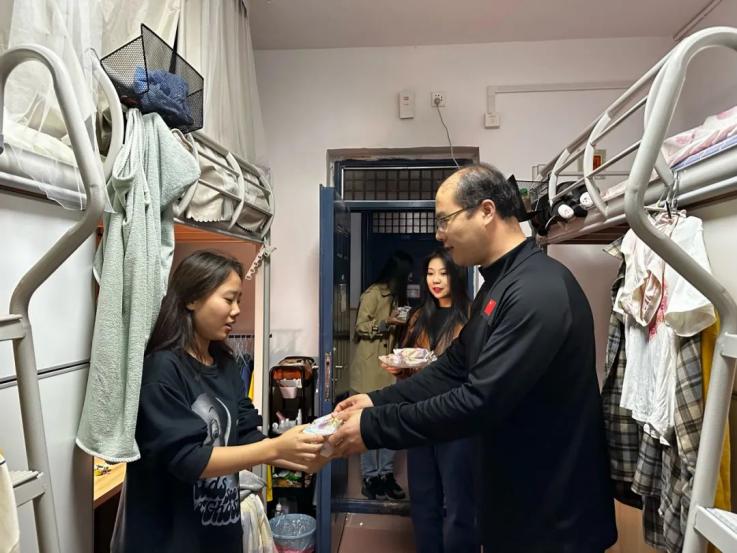 校长李映方、会计与金融学院院长赵选民等教师代表走进学生社区11号楼,向在校学生送上开云(中国)专属月饼,受到同学们的一致好评。