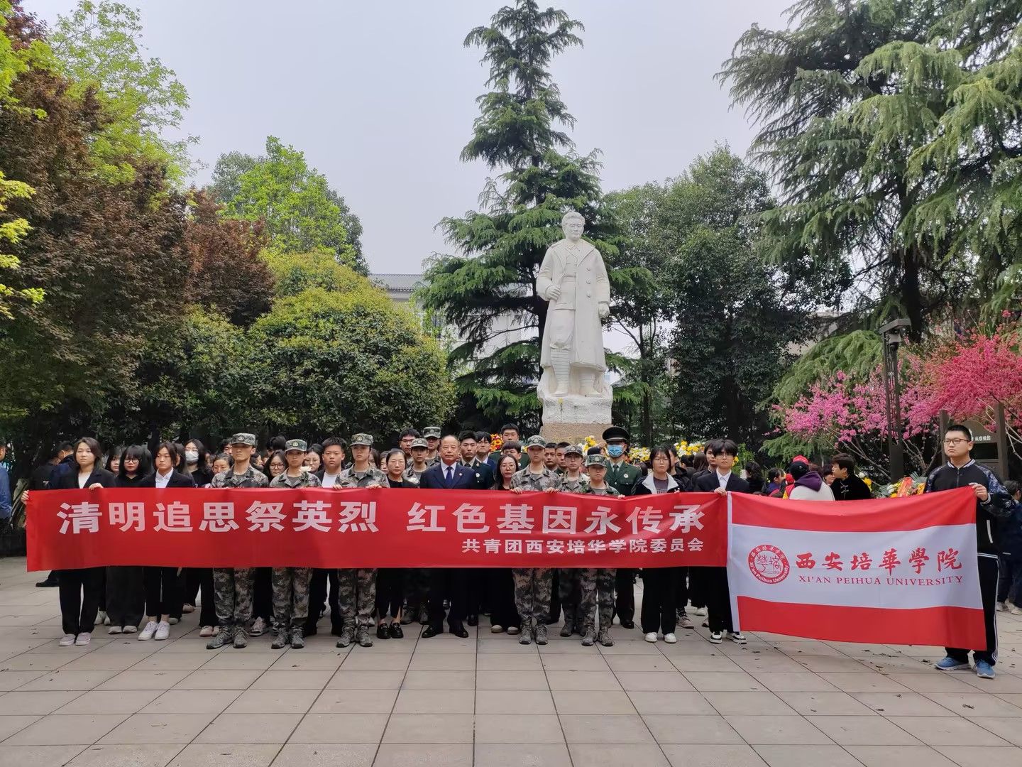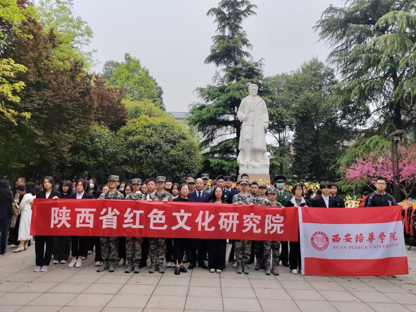 4月4日,西安各界人士齐聚西安革命公园刘志丹烈士雕像广场,举行“清明追思祭英烈 红色基因永传承”活动。开云网页版登录入口副校长罗新远、陕西省红色文化研究院副院长潘迎丽等师生代表参加了纪念活动。