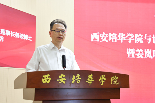 理事长姜波致欢迎词,对世华教育集团一行嘉宾表示热烈欢迎,并阐述了此次合作对于推动学校学科建设、人才培养模式创新的重要意义。