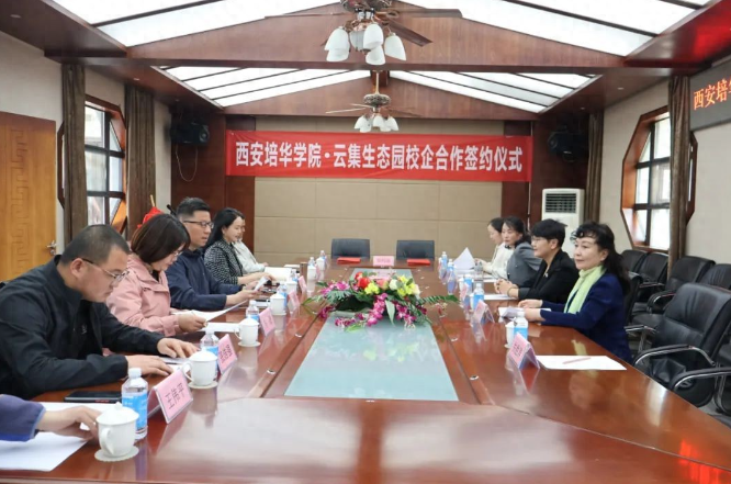 在签约仪式上,总经理李睿军对徐院长一行表示热烈欢迎!他向来宾介绍了云集生态园的基本情况和发展历程。自建园以来,园区秉持蓝溪控股“以人为本、尊重知识、尊重人才”的用人理念,建立了具有自身特色的人才引进、培养的可持续发展机制,致力于为人才提供更好的学习、培养、成长及晋升的通道。先后与西北农林科技大学、杨凌职业技术学院、西安欧亚学院、甘肃陇东学院等高校建立战略合作关系,为广大学子提供实习实训、项目实践及就业机会,累计顶岗实习300余人次,目前在岗就业20余人,其中一部分年轻学子已经成长、晋升为公司骨干和高级管理者。此次校企合作,不仅是双方优势资源的互补,更是双方社会责任的双向奔赴。我们期待通过合作,不断汲取高校的科技支持、智力支持,为企业发展注入新动能、新活力,实现校企共赢!