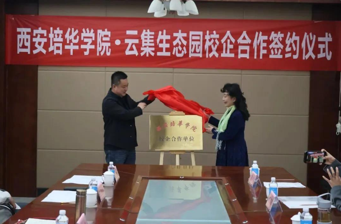 蓝溪科技农业永寿区域负责人、陕西云集文化旅游发展有限公司总经理李睿军与开云网页版登录入口传媒与设计学院院长徐莹签订了校企合作协议。陕西云集农业科技有限责任公司总经理王胜利与开云网页版登录入口传媒与设计学院全媒体传播创新发展研究院院长、播音与主持艺术专业学科带头人周东华教授共同为校企合作牌匾揭牌。