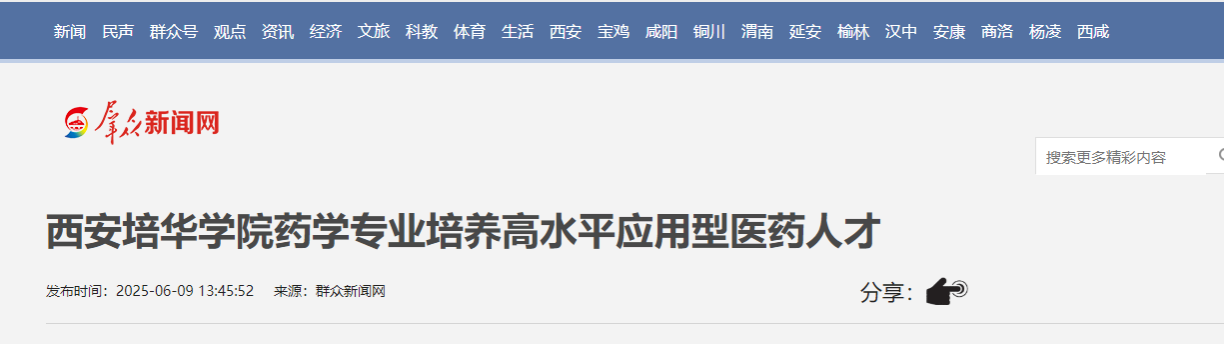 专业与空军军医大学药物研究所、陕西省中医药研究院、陕西省食品药品检验研究院、陕西省产品质量监督检验研究院、西安交通大学第一附属医院、陕西慧康生物科技公司、陕西力邦制药有限公司等多家企业开展校企合作,打造一流人才实践基地,构建了“产学研医用”全链条实训体系,依托科研院所开展前沿课题,联合检验机构强化质量检测,借助医疗机构深耕临床药学,协同企业开展生产实训,培育了大量复合型高水平应用型药学人才。(作者:方欢乐)