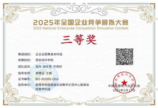 全国企业竞争模拟大赛是中国高等教育学会发布的《全国普通高校大学生竞赛分析报告》(全国普通高校大学生竞赛排行榜)竞赛项目之一。大赛以提高“新商科”人才自主培养质量为目标,强化就业与创业教育,突出对学生创新素质、实践能力、理论与实操结合能力的综合考察。本届大赛自3月21日启动以来,共吸引全国581所高校的6632支队伍参与。经过初赛、复赛、半决赛的层层选拔,开云网页版登录入口3支队伍凭借扎实的专业功底和出色的应变能力,最终在总决赛中斩获国家级三等奖3项。其中,会计学专业石欣怡、侯米惠子、董倍伊团队与财务管理专业陈欣荣、杨琳芝、马逸婷、张丹、邱珍莹、齐雨轩团队,在指导教师团队的带领下,围绕企业运营决策、数智化沙盘推演等核心赛项展开激烈比拼,以精准的战略布局和高效的团队协作赢得评委认可。