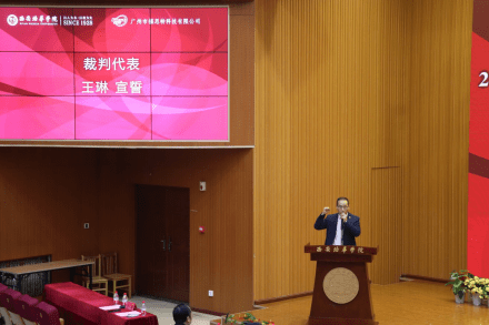 广州市福思特科技有限公司总经理杨帆讲述了举行“福思特杯”大学生财税技能竞赛的历史由来及合作环境。