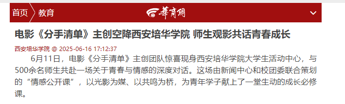 当日下午2时,活动中心化身情感剧场。精心设计的入场券、走廊两侧的电影海报展架、主题合影框前跃动的身影,无不彰显着这场活动的仪式感。随着影片开场,马天泽与夏沫在高档餐厅完成“分手作业”的荒诞剧情引得全场爆笑,而当两人相拥告别时,黑暗中此起彼伏的抽泣声与手机灯光汇成的星海交织,映照出一张张泪中带笑的面庞。