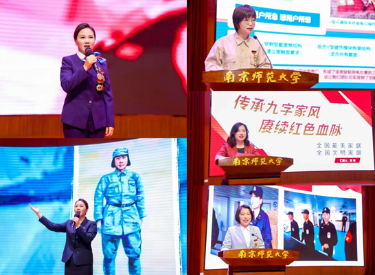 来自各行各业的五位巾帼模范分享了她们的奋斗故事与精神感悟。杨靖宇将军曾外孙女,全国文明家庭、河南省模范教师常青讲述了家庭传承红色家风的故事,强调了“严要求、重责任、懂知足”的家教传统以及将烈士故事融入思政教学的实践。南京市雨花台烈士陵园管理局社会教育处讲解员姜慧讲述了抗战中孙晓梅烈士的英勇事迹,激励青年学子传承英烈精神。全国三八红旗手、全国劳动模范,国网无锡供电公司电缆运检中心主任何光华讲述了自己从基层成长的历程,强调创新源于对工作的精益求精。全国见义勇为模范、江苏省三八红旗手标兵,江苏沿江高速公路有限公司江阴新桥服务区安全员陈传香分享了她见义勇为和社会服务的感人故事,并勉励同学们保持初心、乐于助人。全国三八红旗手、全国劳动模范,江苏省盱眙县黄花塘镇芦沟社区党总支书记、居委会主任徐玲分享了自己从航母女舵手到乡村振兴领头人的经历,呼吁女大学生在实践中绽放光彩。