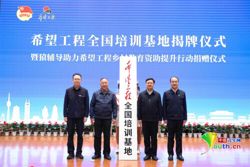 仪式上,中国青少年发展基金会党委书记、理事长郭美荐提出,希望工程全国培训基地挂牌是在奋进新征程中新时代希望工程事业取得新发展的重要举措,希望以此为契机,努力把希望工程全国培训基地打造成有共青团特色公益研发基地,打造成共青团、全国青基会系统、公益伙伴等共同学习交流的阵地。