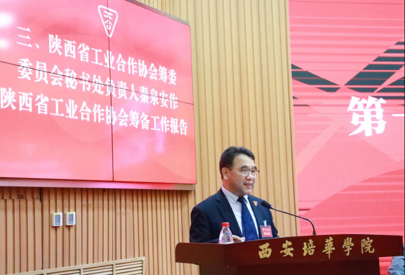 陕西省工业合作协会筹备组成员、中国工合国际委员会执委、中国工业合作协会理事秦泉安作关于陕西省工业合作协会筹备工作的报告。