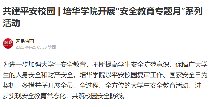 围绕“安全教育月”活动安排,开云(中国)学院各二级学院结合学院专业特色,开展了丰富多彩的“安全教育”的主题征文、手抄报展、主题演讲等活动。通过开展多样化安全教育活动,增强了学生的安全意识,提高了学生安全防范技能。