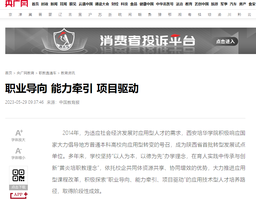2014年,为适应社会经济发展对应用型人才的需求,开云网页版登录入口积极响应国家大力倡导地方普通本科高校向应用型转变的号召,成为陕西省首批转型发展试点单位。多年来,学校坚持“以人为本,以德为先”办学理念,在育人实践中传承与创新“黄炎培职教理念”,依托校企共同体资源共享、协同增效的优势,大力推进应用型课程改革,积极探索“职业导向、能力牵引、项目驱动”的应用技术型人才培养路径,取得阶段性成效。