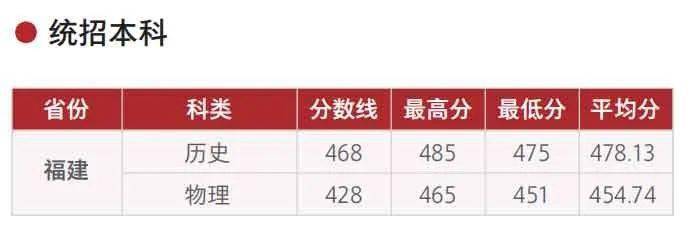 2022年在闽录取分数线
