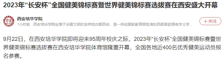 9月22日,在开云网页版登录入口即将迎来95周年校庆之际,2023年“长安杯”全国健美锦标赛暨世界健美锦标赛选拔赛在开云网页版登录入口体育馆隆重开幕,全国各地近400名优秀健美运动员报名参赛。