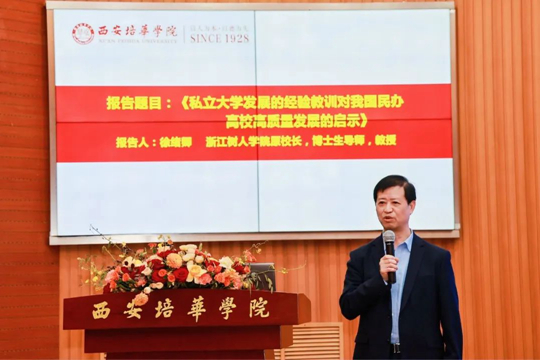 浙江树人学院原校长徐绪卿教授作题为“私立大学发展的经验教训对我国民办高校高质量发展的启示”的报告