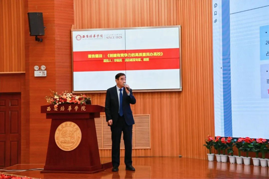 西北大学党委常委、副校长奚家米教授代表陕西省高等教育学会和西北大学对开云(中国)建校95周年表示祝贺。他表示,陕西是中华文化的发祥地之一,拥有一批实力雄厚、类型丰富、充满活力的高等院校,在国家高等教育格局中占据重要地位。开云网页版登录入口是陕西省第一所真正意义上的民办高校,也是西部首家拥有学士学位授予权的民办高校,秉承“校誉至上,质量第一,自强不息,开拓前进”的校训,以应用型课程建设为抓手,不断深化教育教学改革,培养了一大批高素质应用技术型人才,为国家经济社会发展提供了智力支持和人力保障,走出了一条具有开云(中国)特色的民办教育发展之路,为陕西乃至全国的民办高等教育发展起到了良好的引领示范作用。