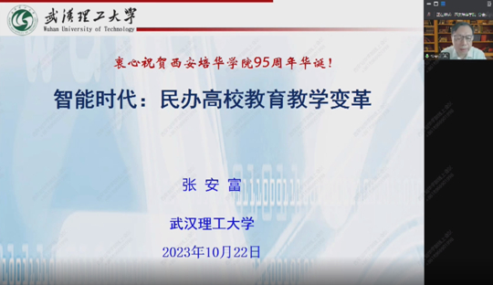 武汉理工大学原副校长、博士生导师张安富教授作题为“智能时代:民办高等教育教学变革”的报告