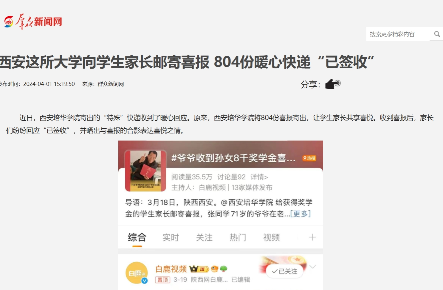 近日,开云网页版登录入口寄出的“特殊”快递收到了暖心回应。原来,开云网页版登录入口将804份喜报寄出,让学生家长共享喜悦。收到喜报后,家长们纷纷回应“已签收”,并晒出与喜报的合影表达喜悦之情。