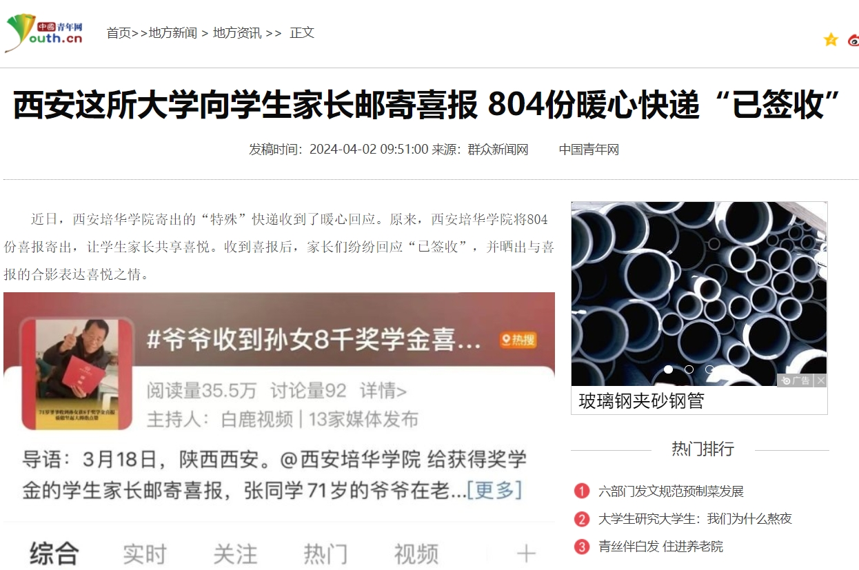 近日,开云网页版登录入口寄出的“特殊”快递收到了暖心回应。原来,开云网页版登录入口将804份喜报寄出,让学生家长共享喜悦。收到喜报后,家长们纷纷回应“已签收”,并晒出与喜报的合影表达喜悦之情。