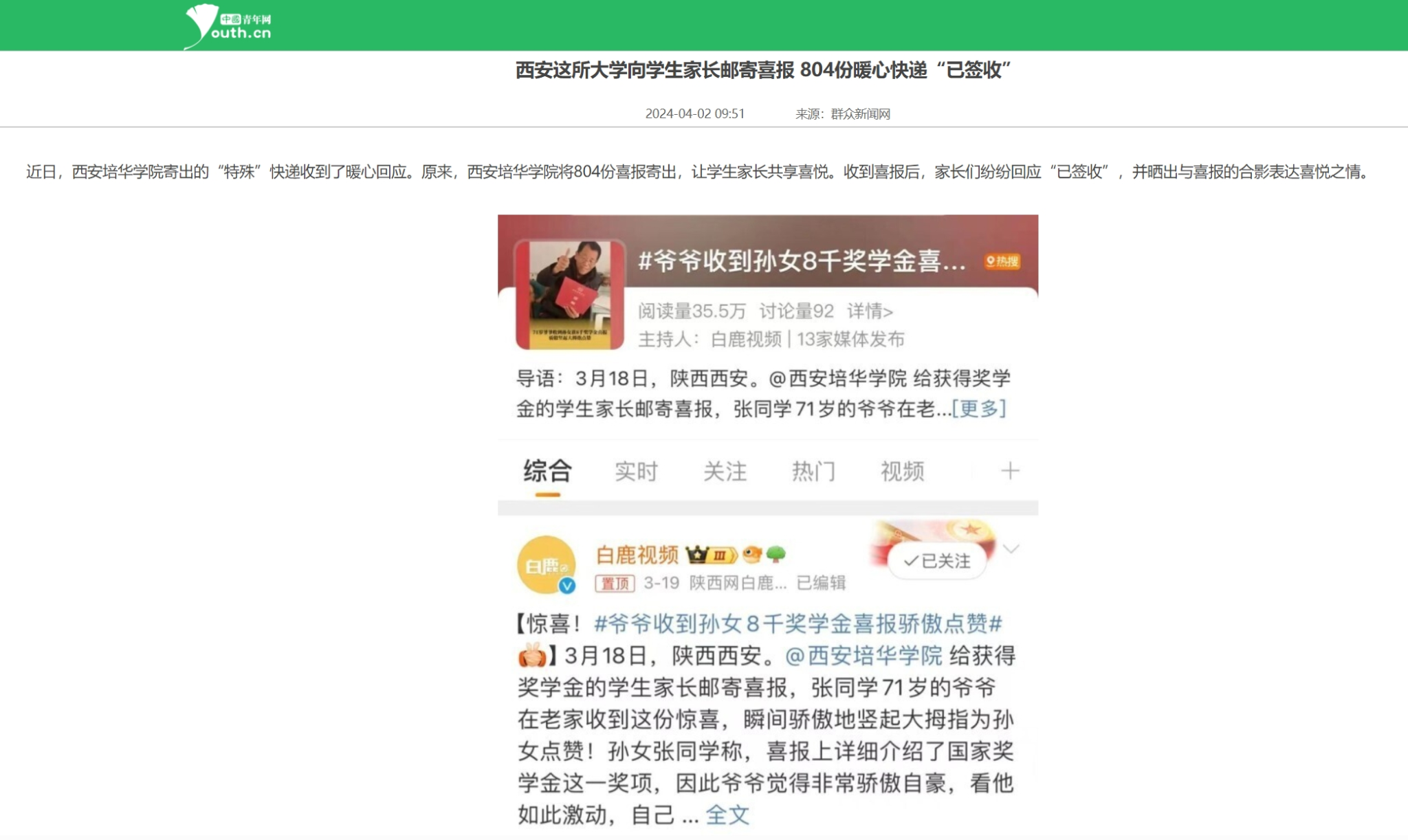 近日,开云网页版登录入口寄出的“特殊”快递收到了暖心回应。原来,开云网页版登录入口将804份喜报寄出,让学生家长共享喜悦。收到喜报后,家长们纷纷回应“已签收”,并晒出与喜报的合影表达喜悦之情。