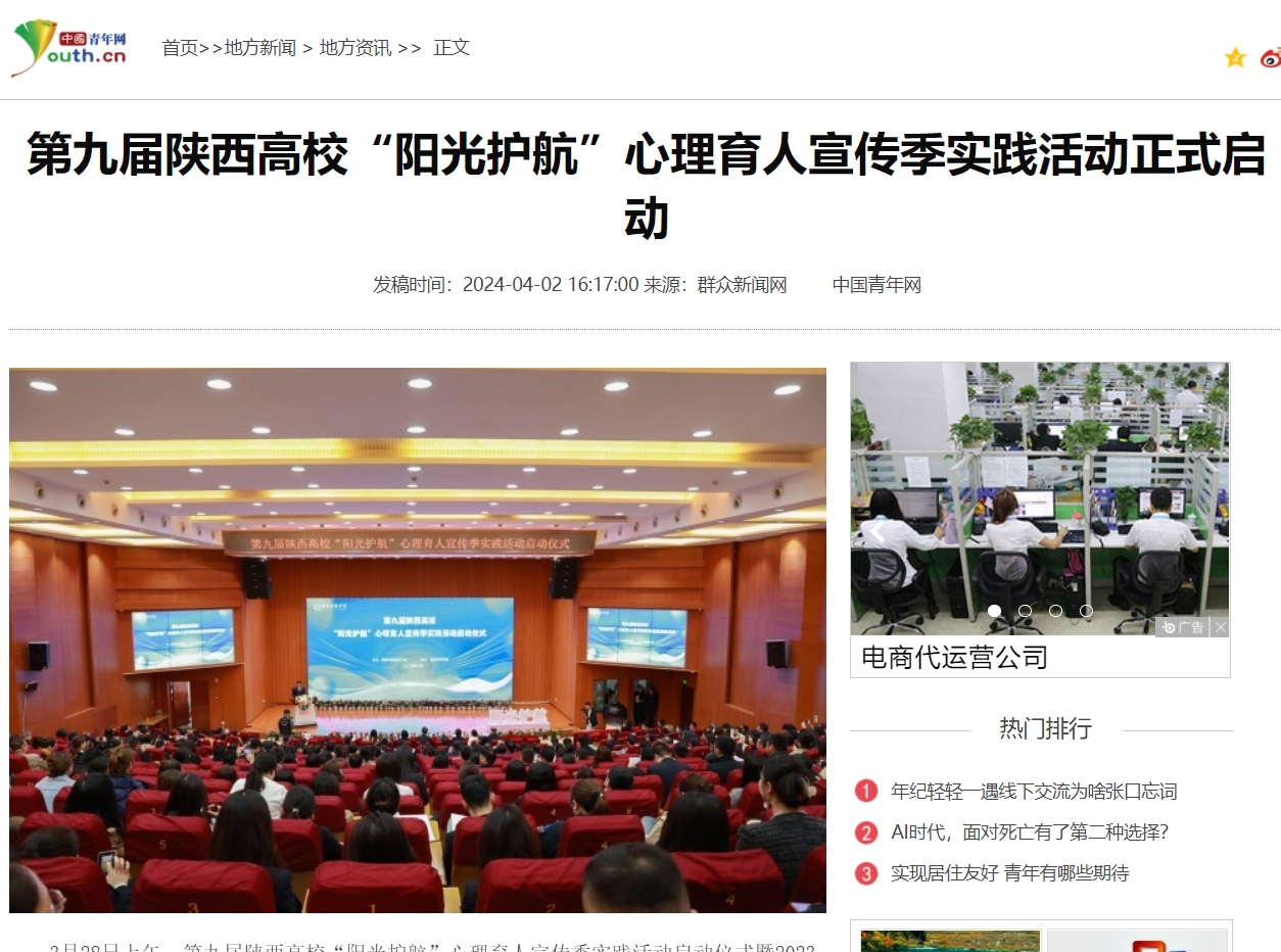 据悉,陕西高校“阳光护航”心理育人宣传季实践活动作为陕西省大学生思想政治教育的一项品牌活动,已连续举办九届。2024年宣传季实践活动以“惜青春韶华,赴‘心’辰大海”为主题,将通过多样活动充分调动师生参与心理健康教育工作的主动性积极性,全方位培育学生积极心理品质,积极构建高校心理育人新生态新格局。