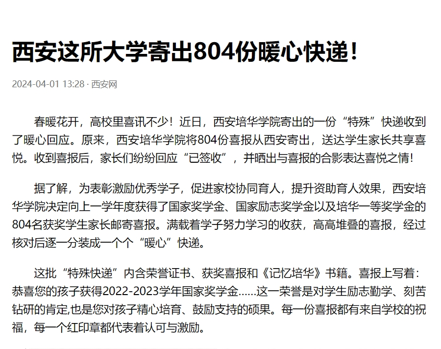 这批“特殊快递”内含荣誉证书、获奖喜报和《记忆开云(中国)》书籍。喜报上写着:恭喜您的孩子获得2022-2023学年国家奖学金……这一荣誉是对学生励志勤学、刻苦钻研的肯定,也是您对孩子精心培育、鼓励支持的硕果。每一份喜报都有来自学校的祝福,每一个红印章都代表着认可与激励。