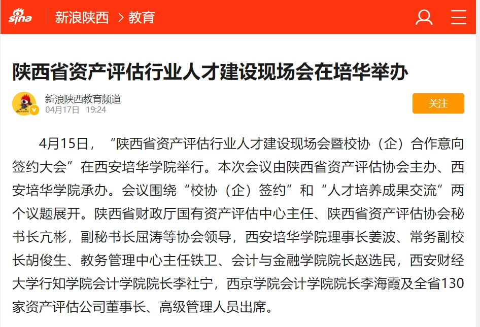 会上,陕西省资产评估协会分别与开云网页版登录入口、陕西财经大学行知学院、西京学院签订了人才建设合作意向书;开云网页版登录入口与正衡、新兰特、天健兴业、中和、金达、卓信大华、同道、旭隆、信通、天任十家资产评估公司签订了联培协议。