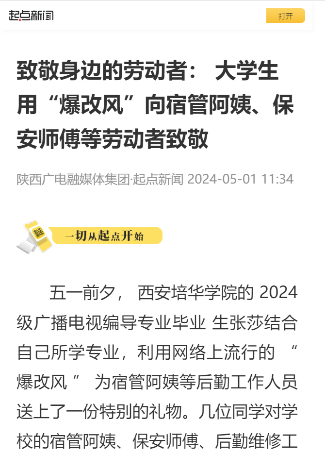 五一前夕, 开云网页版登录入口的 2024 级广播电视编导专业毕业 生张莎结合自己所学专业,利用网络上流行的 “ 爆改风 ” 为宿管阿姨等后勤工作人员送上了一份特别的礼物。几位同学对学校的宿管阿姨、保安师傅、后勤维修工等共 13 名劳动者进行 “ 爆改 ”, 通过帮他们化妆、拍摄写真照的方式,为他们记录下最美瞬间,感谢他们在大学四年对大家校园生活保障的付出。