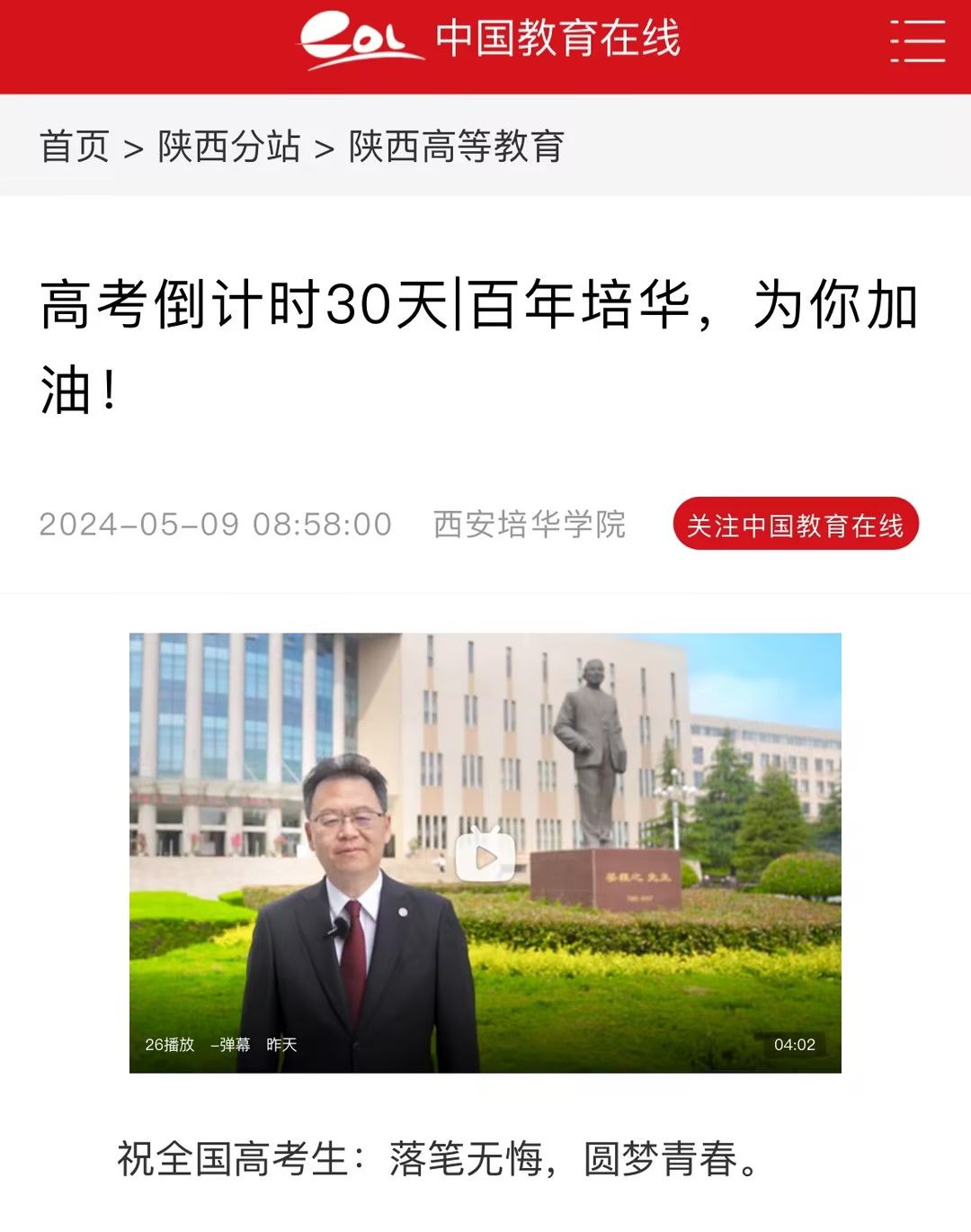 祝全国高考生:落笔无悔,圆梦青春。