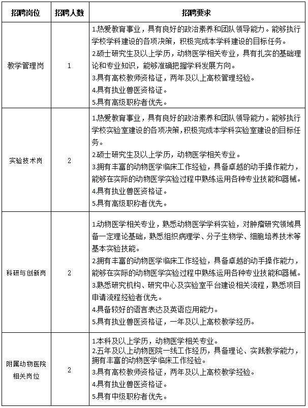 医学院动物医学专业招聘信息及要求如下: