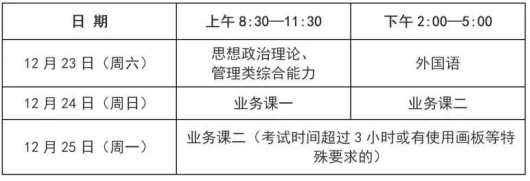 2024年全国硕士研究生招生考试(初试)将于12月23日-25日进行,考试具体时间、科目安排如下: