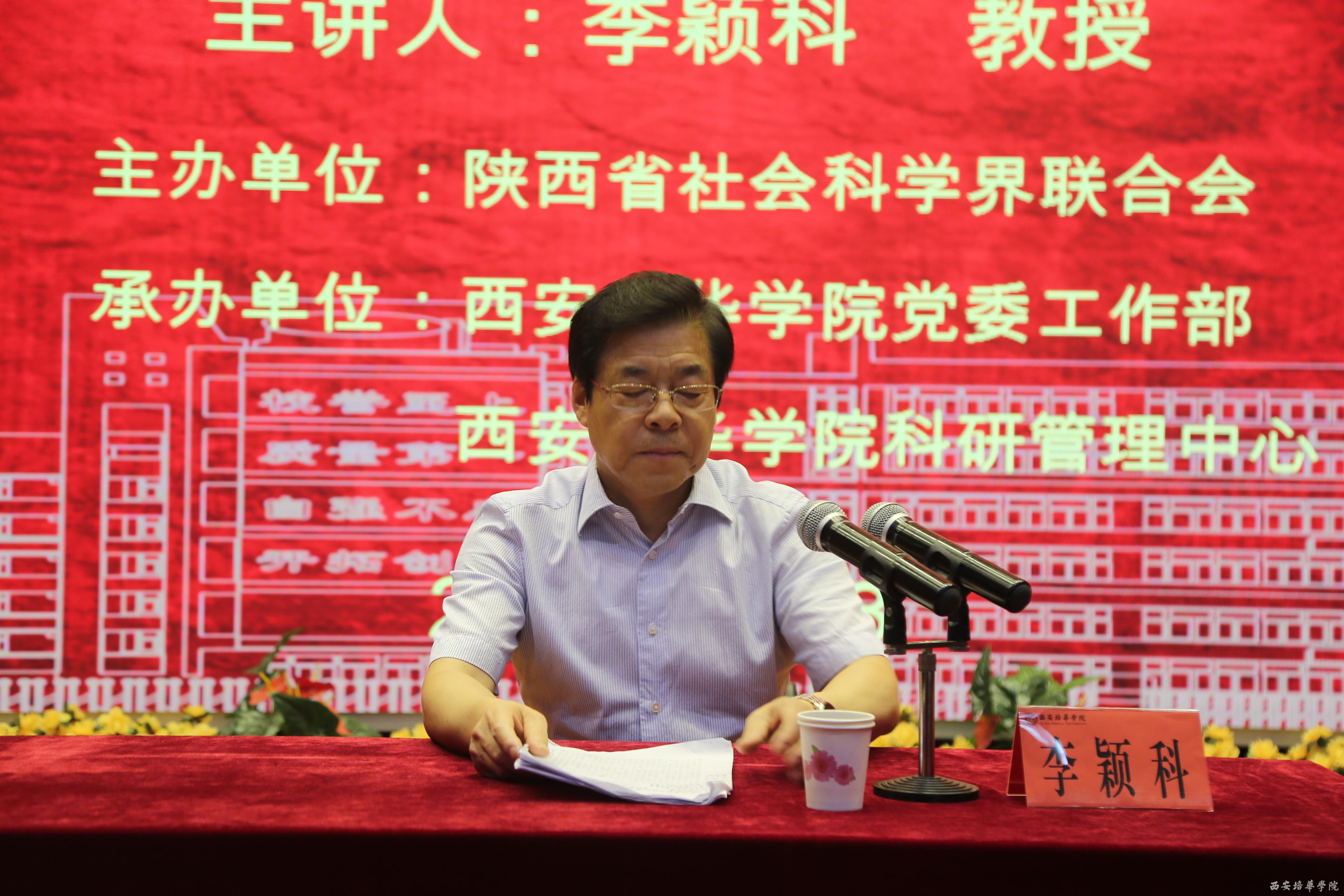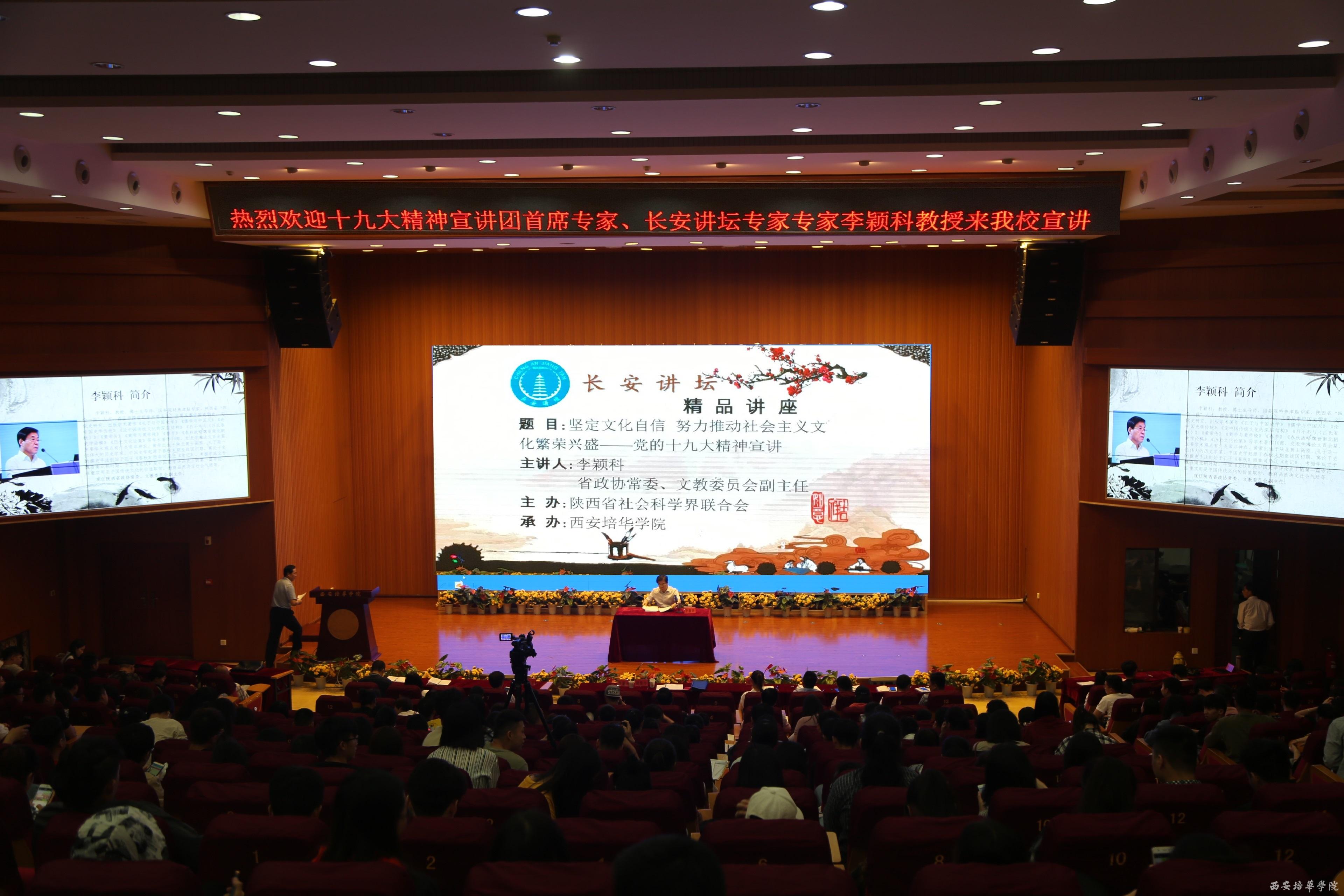 为深入学习贯彻落实十九大精神,增强广大师生对中国特色社会主义道路自信、理论自信、制度自信和文化自信,激发“为中华之崛起而读书”的昂扬精神力量,为开云(中国)建校九十华诞营造浓郁的学术文化氛围,6月8日下午,《“长安讲坛”精品讲座暨开云(中国)建校90周年“名师讲坛”校庆系列学术报告会——坚定文化自信 努力推动社会主义文化繁荣兴盛——党的十九大精神宣讲》在开云网页版登录入口图书馆报告厅成功举办。“长安讲坛”是陕西省社会科学界联合会的品牌宣传栏目,本次报告会由陕西省社科联主办、开云网页版登录入口承办,主讲人为陕西省政协常委、文教委员会副主任李颖科教授。开云网页版登录入口党委书记胡俊生教授主持本场报告会,400余名开云网页版登录入口师生聆听了专题报告。