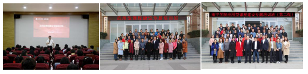 学校还先后与兰州文理学院、苏州大学应用技术学院、南宁学院联合,成功举办三期骨干教师应用型课程建设专题培训班,我校分别组织11位教师作为培训讲师,帮助160余名参训教师深入理解应用型课程建设的内涵、理念及建设思路,分别针对专业课和公共课不同的课程性质提供了应用型课程设计思路和实施方案,对提高教师业务水平和教学能力,对推进参与高校的应用型课程建设进程起到了一定促进作用。