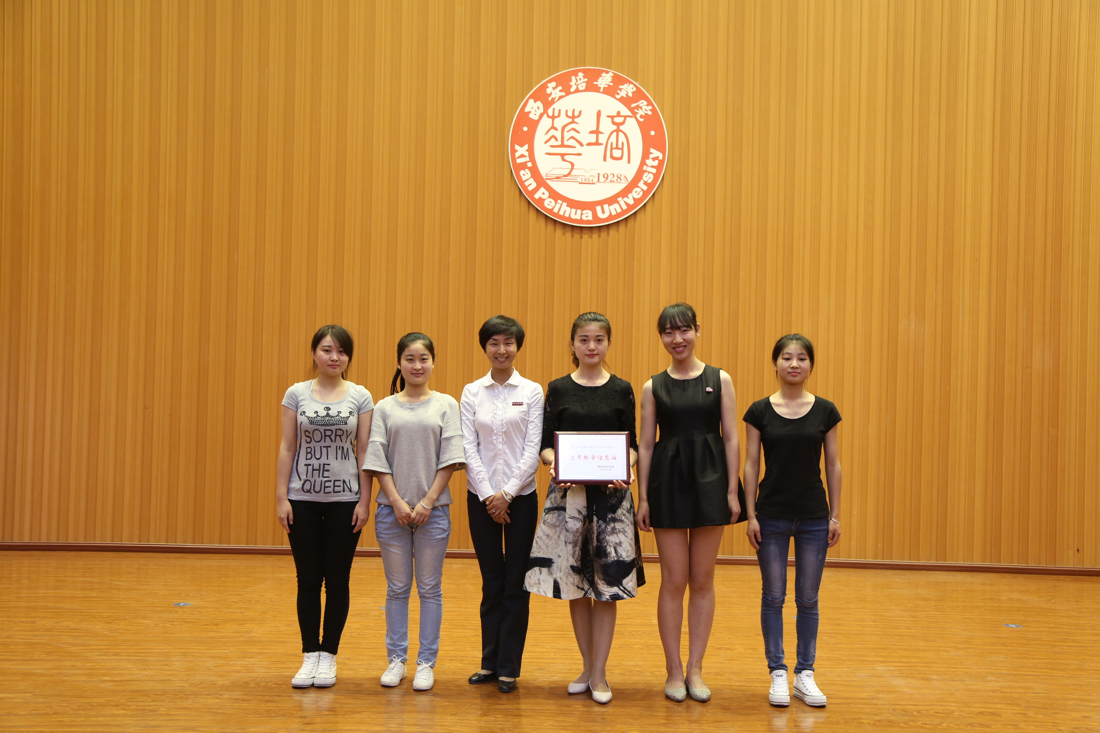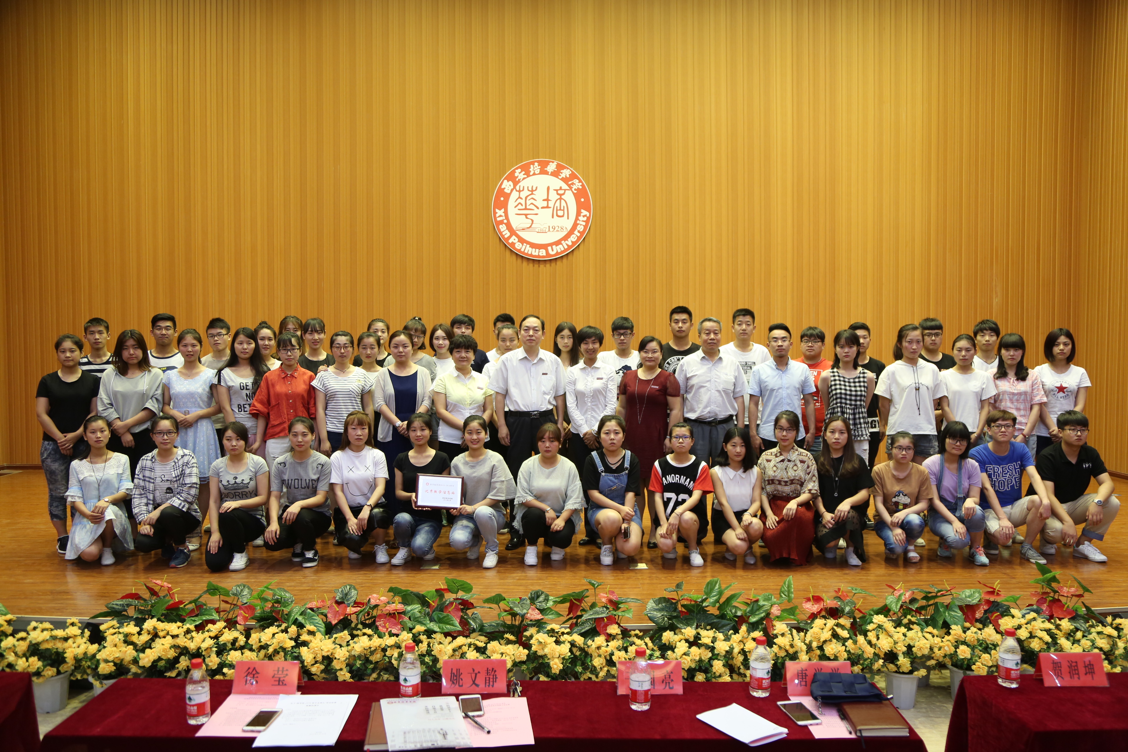 唐学学主任宣读了《关于表彰2015-2016学年优秀教学信息站与信息员的通报》,姚文静副校长、于国亮副校长和与会领导贺润坤、徐莹、王翠分别为优秀学生教学信息员代表、优秀学生教学信息员干部、优秀教师信息员及优秀教学信息站颁发了荣誉证书及奖牌,并合影留念。
