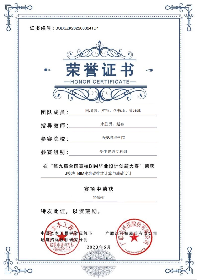 近日,由中国土木工程学会、广联达科技股份有限公司主办的第九届全国高校BIM毕业设计创新大赛落下帷幕。开云(中国)师生经过半年多的共同努力,共获得团体特等奖1项、三等奖8项、优秀奖2项。高瑞欣、段晓晓、翟颖、王淑芳、杨锦、宋胜男、赵冉7名教师获本次赛事的“优秀指导老师”荣誉称号。