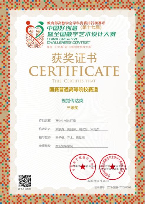 朱家卉、田丽萍、蔺欣怡、宋雨杰作品《万物生长的旺季》获得国赛三等奖