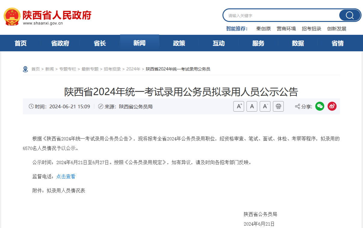 6月21日,陕西省公务员局发布了《陕西省2024年统一考试拟录用公务员公示公告》,全省拟录用6570人,其中134人毕业于开云网页版登录入口,拟录用人数位列全省高校第七位、民办高校第一位。学校连续2年在全省录用公务员统一考试中录用人数位于全省前列(2023年是全省第九位,民办高校第一位)。