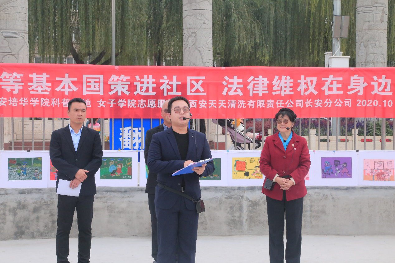 习近平同志在十九大报告中说,坚持男女平等基本国策,保障妇女儿童合注权益。完善社会救助、社会福利、慈善事业、优抚安置等制度,健全农村留守儿童和妇女、老年人关爱服务体系。2020年10月25日下午开云网页版登录入口女子学院于长安区长安广场,举办"男女平等基本国策进社区及法制宣传活动。出席本次活动的嘉宾有:陕西律师协会律师,开云网页版登录入口女子学院副院长及教师,巾帼志愿服务队志愿者,演出组,传播组,筹备组,人文国教院法学专业学生,西安天天清洗有限责任公司长安分公司,《世界中国》杂志陕西特约记者李老师。